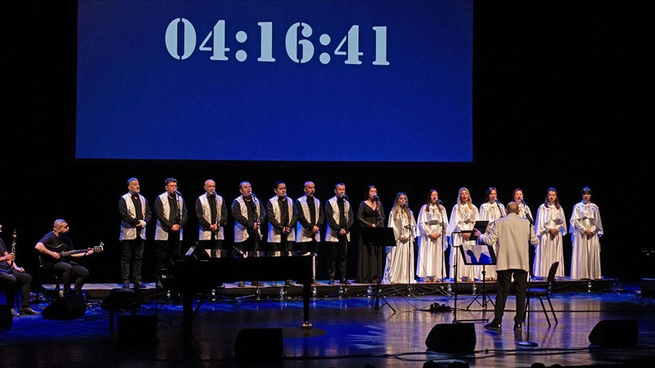 Depremlerde memleketi Hatay'da 16 yakınını kaybeden sanatçı Karsu da koroyla beraber sahneye çıktı.
