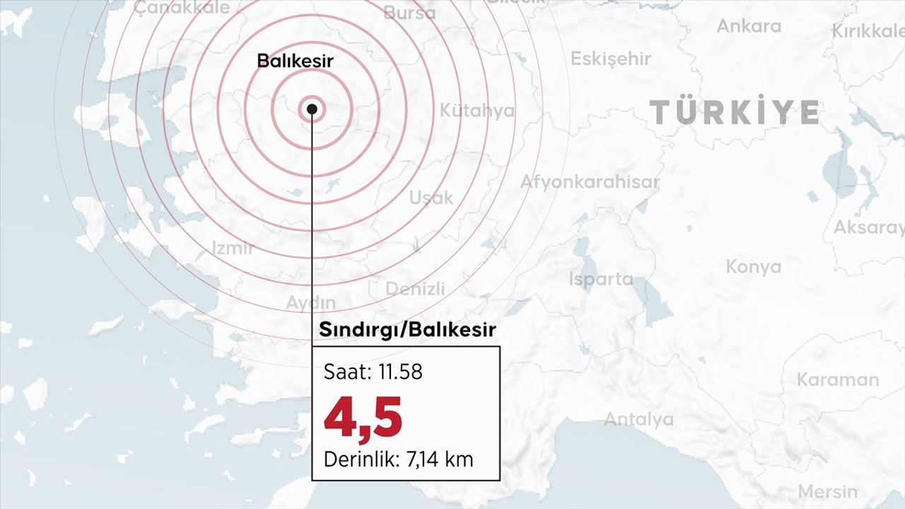 ANKARA (AA) - Afet ve Acil Durum Yönetimi Başkanlığının (AFAD) internet sitesinde yer alan bilgiye göre, merkez üssü Sındırgı ilçesi olan 4,5 büyüklüğünde sarsıntı kaydedildi.