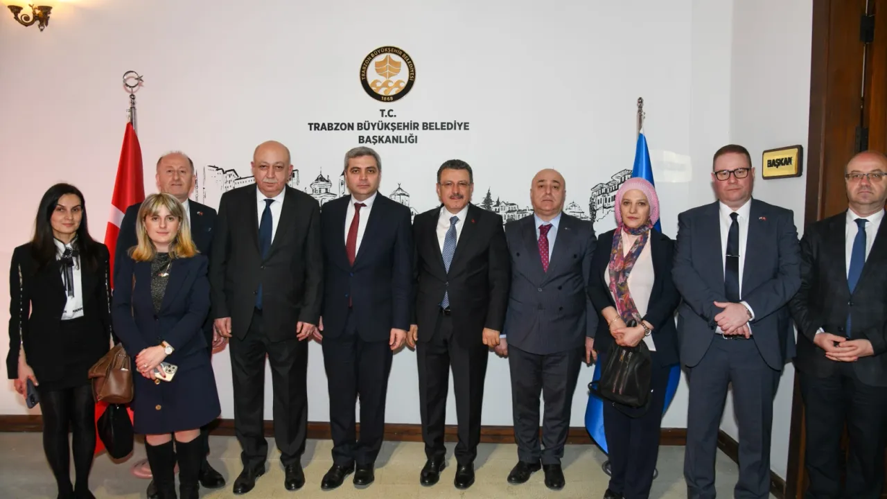 Trabzon Büyükşehir Belediye Başkanı Ahmet Metin Genç, Gürcistan'ın Ankara Büyükelçisi Archil Kalandia'yı makamında ağırladı. Ziyarette iki ülke arasındaki ticari ve kültürel ilişkiler ele alındı.