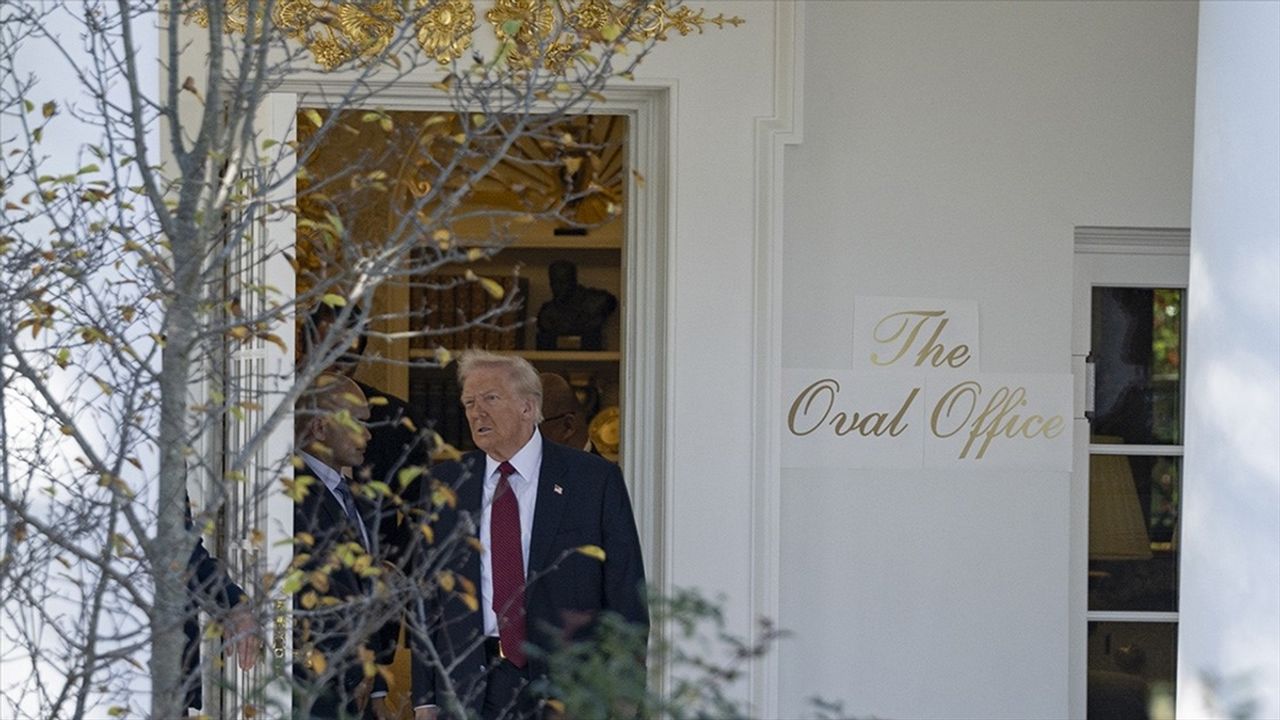 Ofisin giriş kapısının yanına altın rengiyle 'Oval Ofis' yazılı, üç parçadan oluşan kağıt tabelanın asıldığı görüldü.