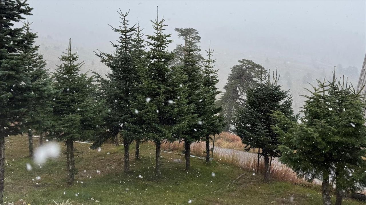 BOLU (AA) - Köroğlu Dağları'nın zirvesinde yer alan 2 bin 200 metre rakımdaki Kartalkaya mevkisi ile Aladağ ve Sarıalan bölgelerinde etkili olan sağanak, yerini kar yağışına bıraktı.