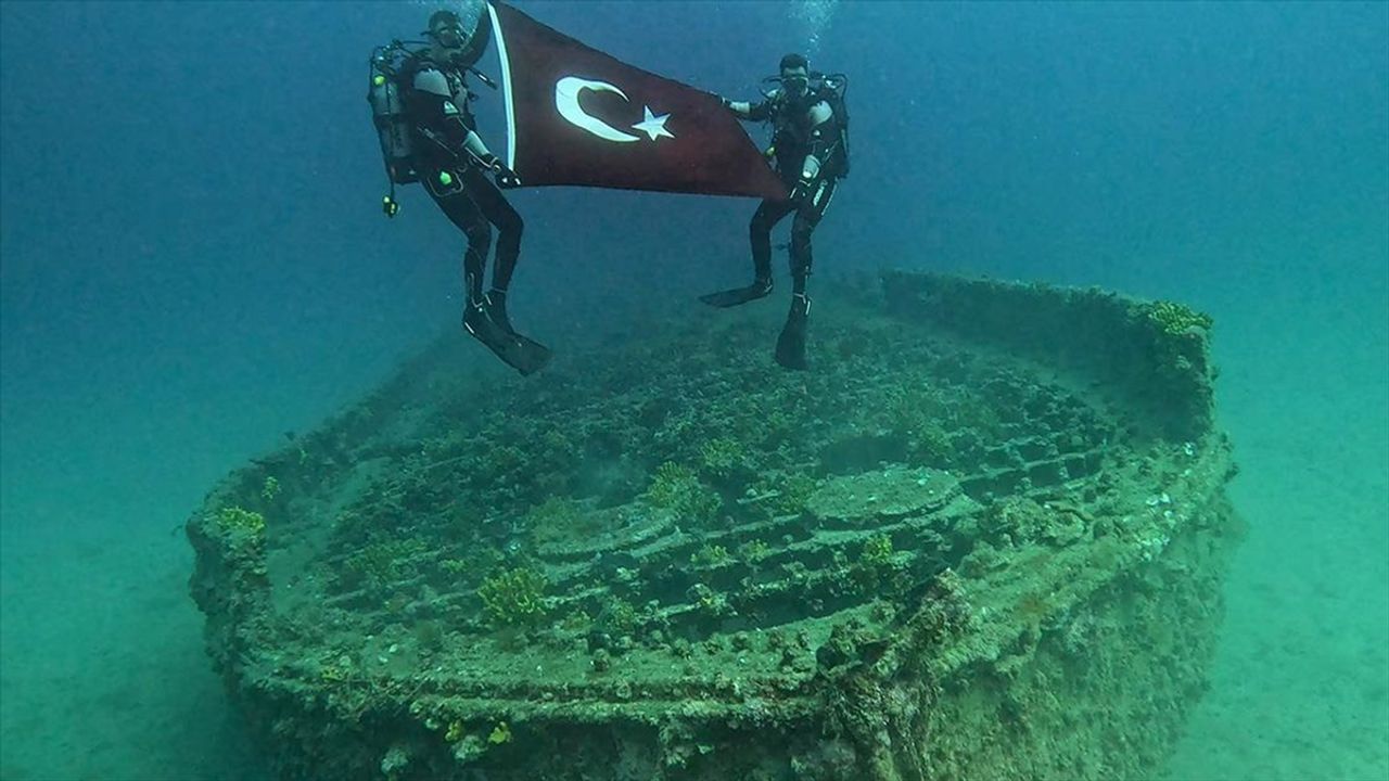 Batıkların görüntülendiği dalışta, Sahil Güvenlik Batı Marmara Grup Komutanlığı ekibi, 30 Ağustos Zafer Bayramı dolayısıyla pankart ve Türk bayrağı açtı.