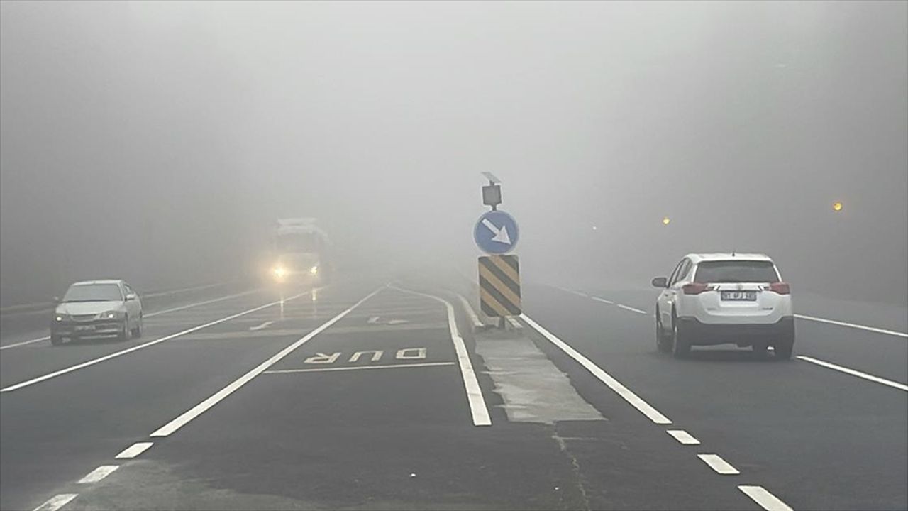 BOLU (AA) - Kara yolunun Abant kavşağı, Bakacak, Karanlıkdere ve Seymenler mevkisinde sis, görüş mesafesini azalttı.