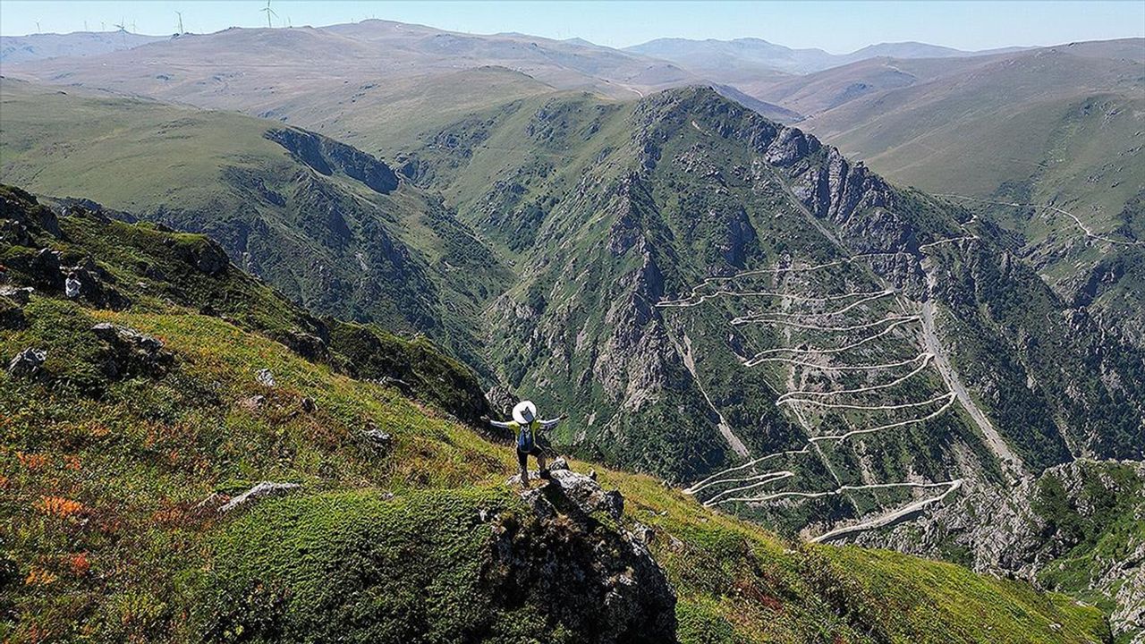 Şekersu Yaylası'ndan yola çıkan ekip, 5 kilometrelik yürüyüşün ardından Bayburt ile Trabzon arasındaki virajların da bulunduğu eşsiz manzaraya ulaştı.