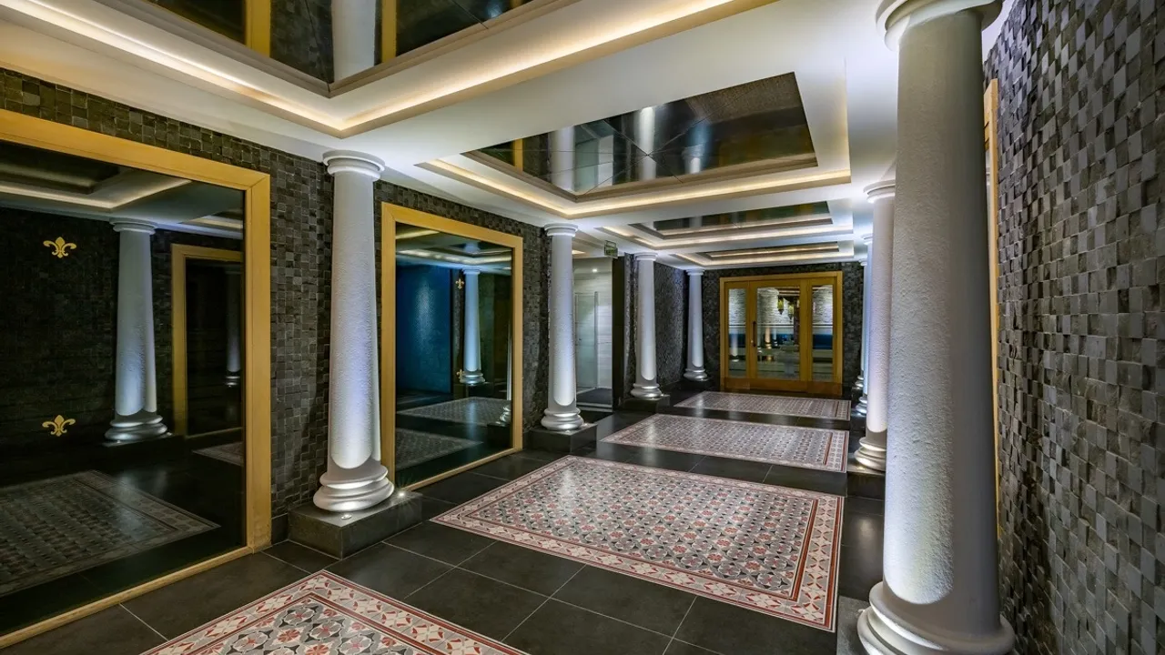 Hamam alanında ayrıca, Efesus Stone'un Afyon ocağından çıkarılan Afyon Beyaz Mermer (Arcobelano) kullanıldı. Kontrast etkisi oluşturmak amacıyla projede NeroMarquina Mermer de tercih edildi. Zemin ve merkez alanlarda uygulanan özel waterjet desen çalışmaları, geleneksel hamam estetiğini çağdaş detaylarla buluşturdu.