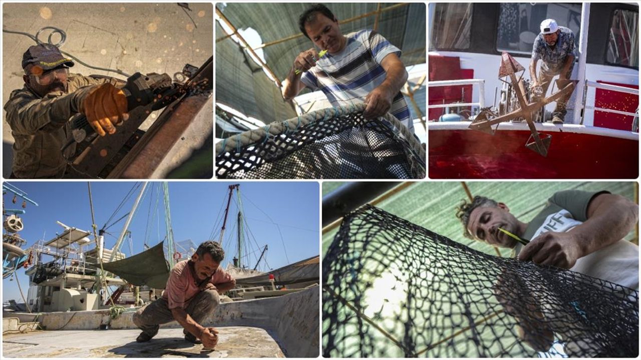 Yaklaşık 4 aylık dönemde bakım, tamirat ve boya işlemleri tamamlanan teknelerde ağların onarımı sürüyor. Günde yüzlerce metre ağ onaran balıkçılar, işlerini 1 Eylül öncesi bitirmeye çalışıyor.