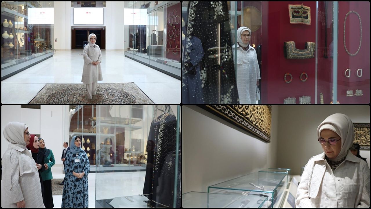 Ülkenin en önemli kültürel mekanlarından olan ve 7 binden fazla eserin sergilendiği müzeyi gezen Emine Erdoğan, Umman Yarımadası'nda insan yerleşiminin en eski kanıtlarından günümüze kadar uzanan kültürel miras öğelerini yakından inceledi.
