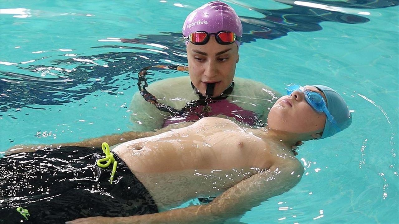'Helin hoca sayesinde yüzmeyi öğrendik'Öğrencilerden Muhammed Yusuf Nergüz (13) antrenörü Helin Betül Duran'ı örnek alarak bu alanda ilerlemeye çalıştığını söyledi.