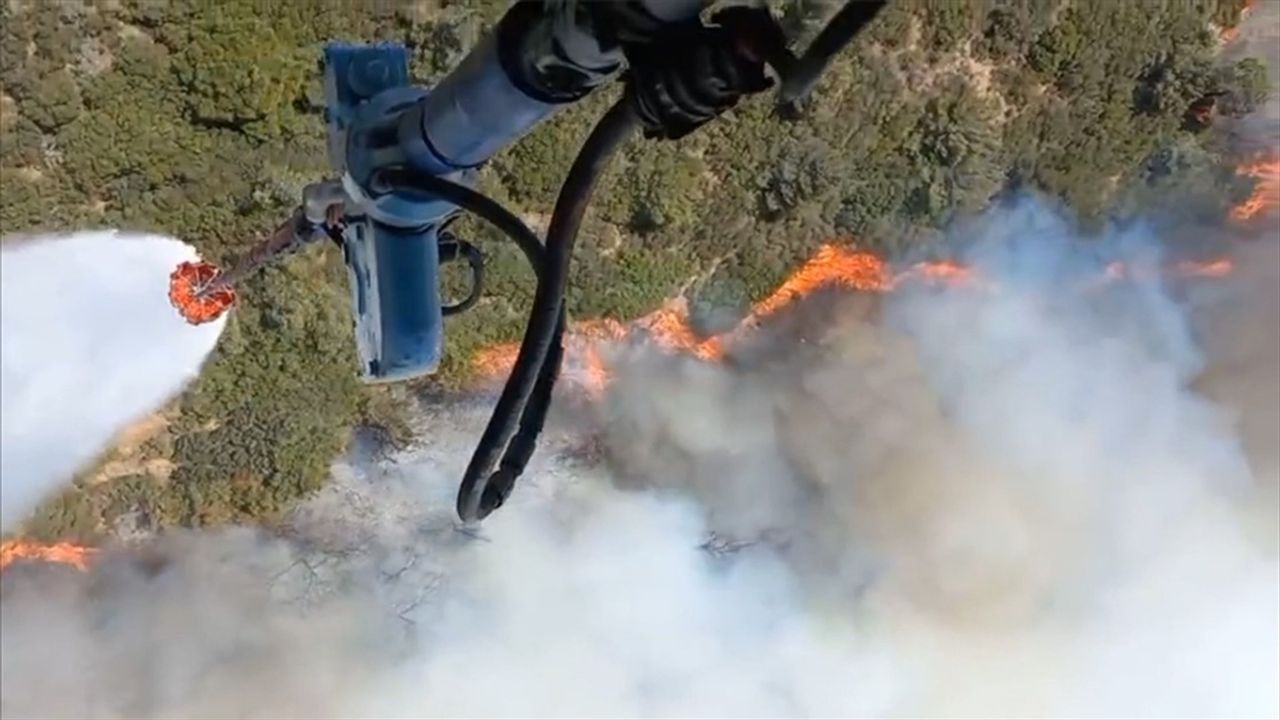 İhbar üzerine bölgeye İzmir Orman Bölge Müdürlüğüne ait 4 uçak, 6 helikopter, 25 arazöz, 7 su ikmal aracı ve 4 dozer sevk edildi.