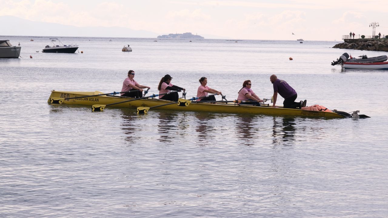 Meme kanseriyle mücadele eden kadınlara destek olmak, hastalığa ilişkin toplumsal farkındalığın artırılması ve kadın dayanışmasının güçlendirilmesinin amaçlandığı etkinliğe kürek sporuna ilgi duyan gönüllüler de katıldı.