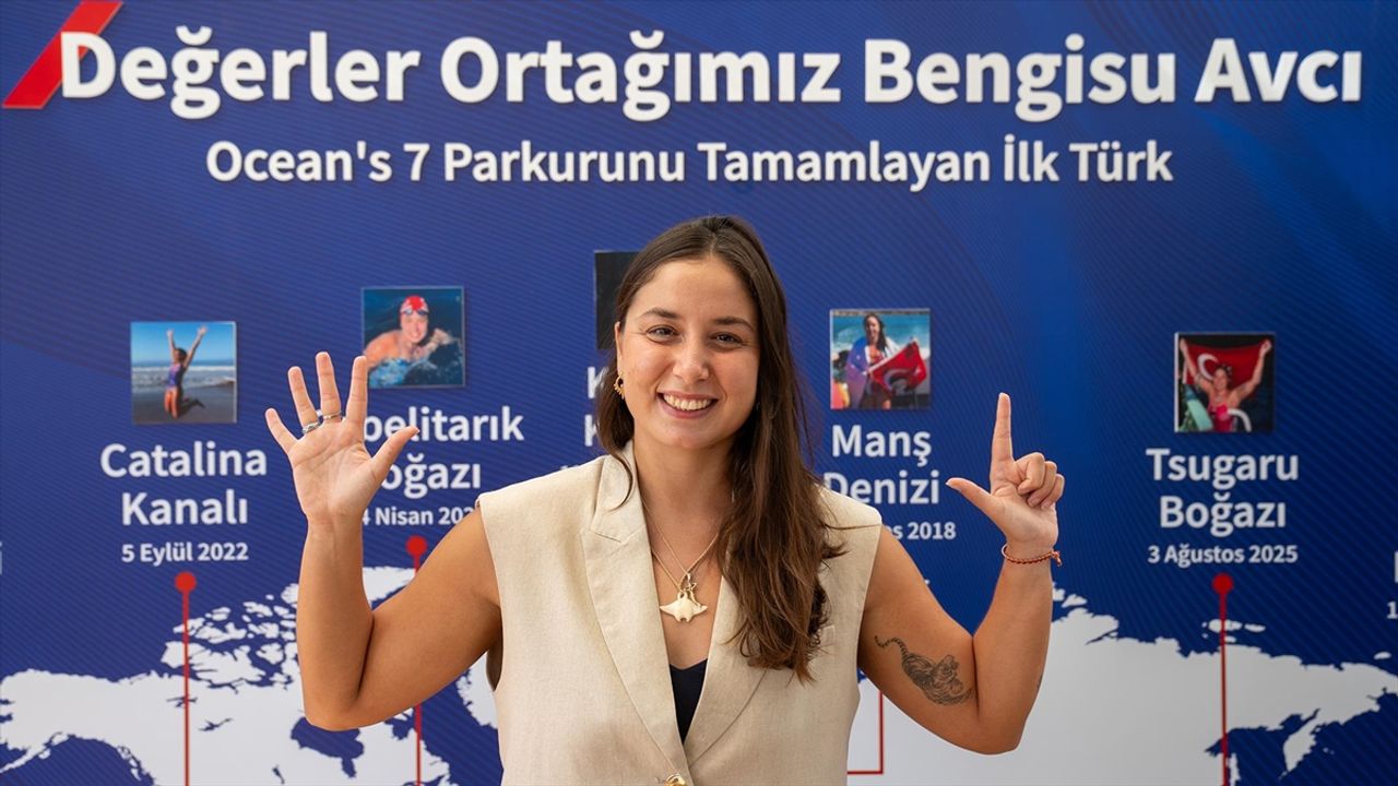 İSTANBUL (AA) - Okyanus Yedilisi'nin tüm parkurlarını tamamlayan ilk Türk yüzücü olan Bengisu Avcı, Beyoğlu'ndaki AXA Türkiye Genel Müdürlüğünde basın toplantısı düzenledi. Toplantıya, yüzücü Bengisu Avcı'nın yanı sıra AXA Türkiye CEO'su Yavuz Ölken, davetliler ve basın mensupları katıldı.