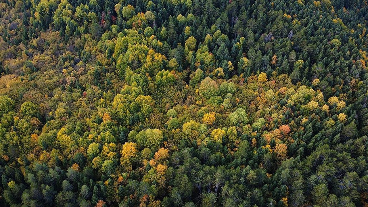 Kentin yüzde 70'ini kaplayan ağaçlık alanlara hakim olan sarı, kahverengi ve yeşilin tonlarının oluşturduğu sonbahar manzarası havadan görüntülendi.