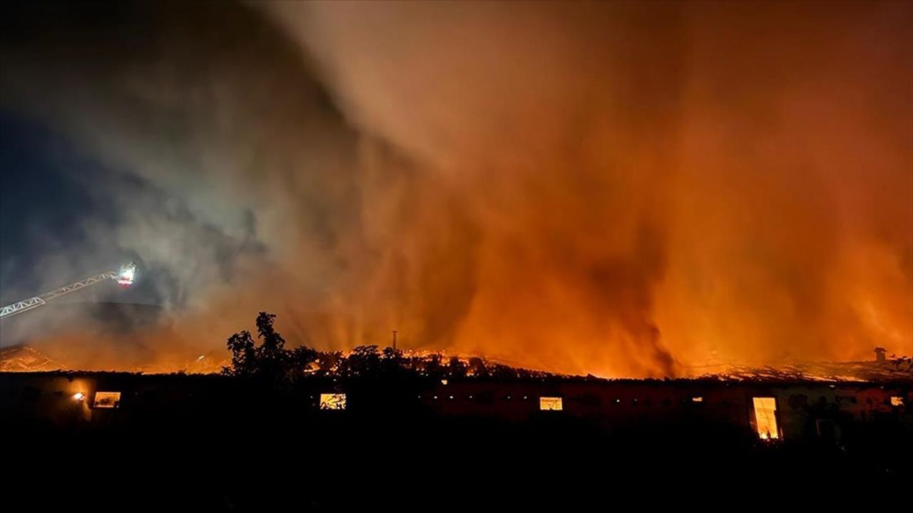 Yangın nedeniyle bölgede yoğun duman oluşurken, ara ara patlama sesleri duyuluyor.