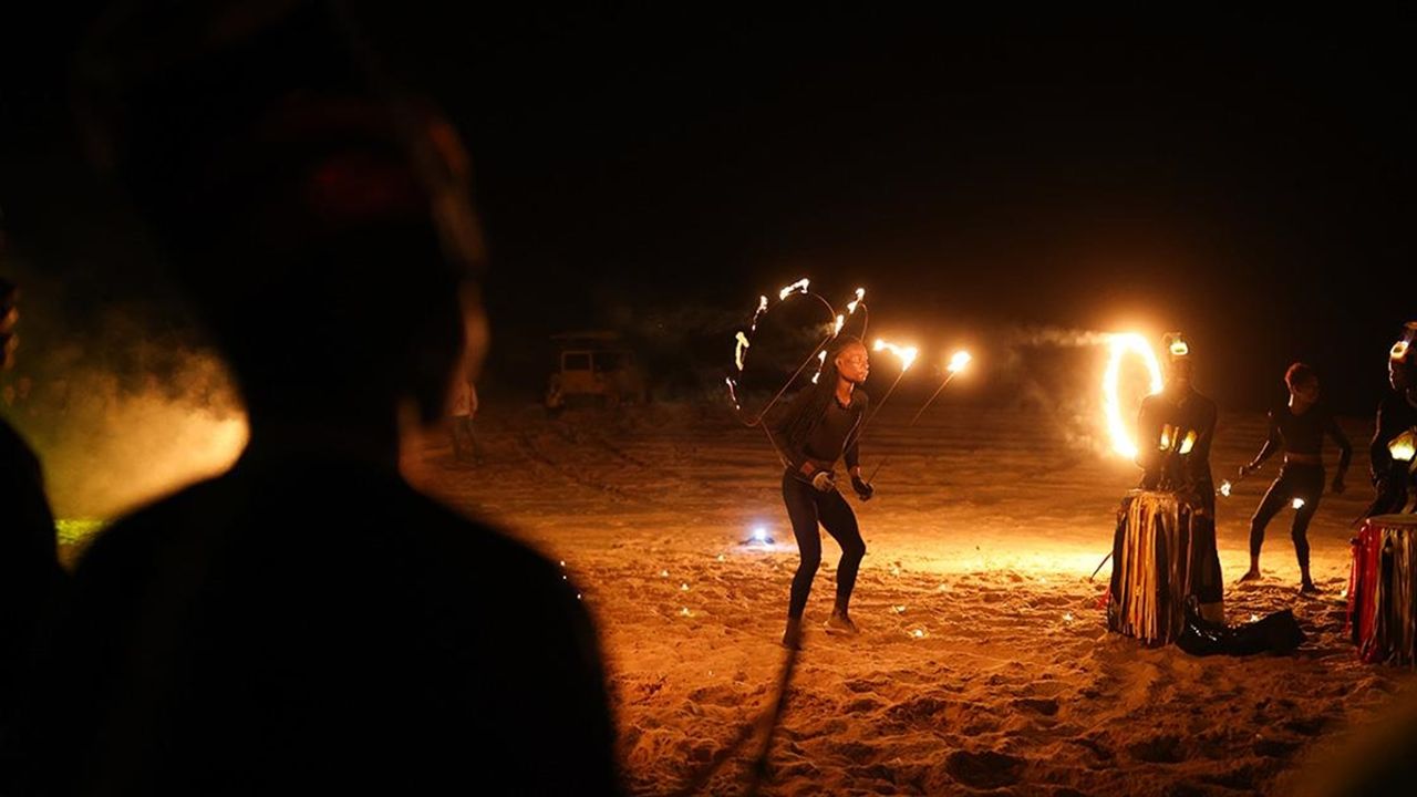 DAKAR (AA) - Dakar yakınlarında, Atlas Okyanusu kıyısında gece yarısı düzenlenen gösteride, geleneksel perküsyonlar çalan grup üyelerine ateş cambazları eşlik etti.