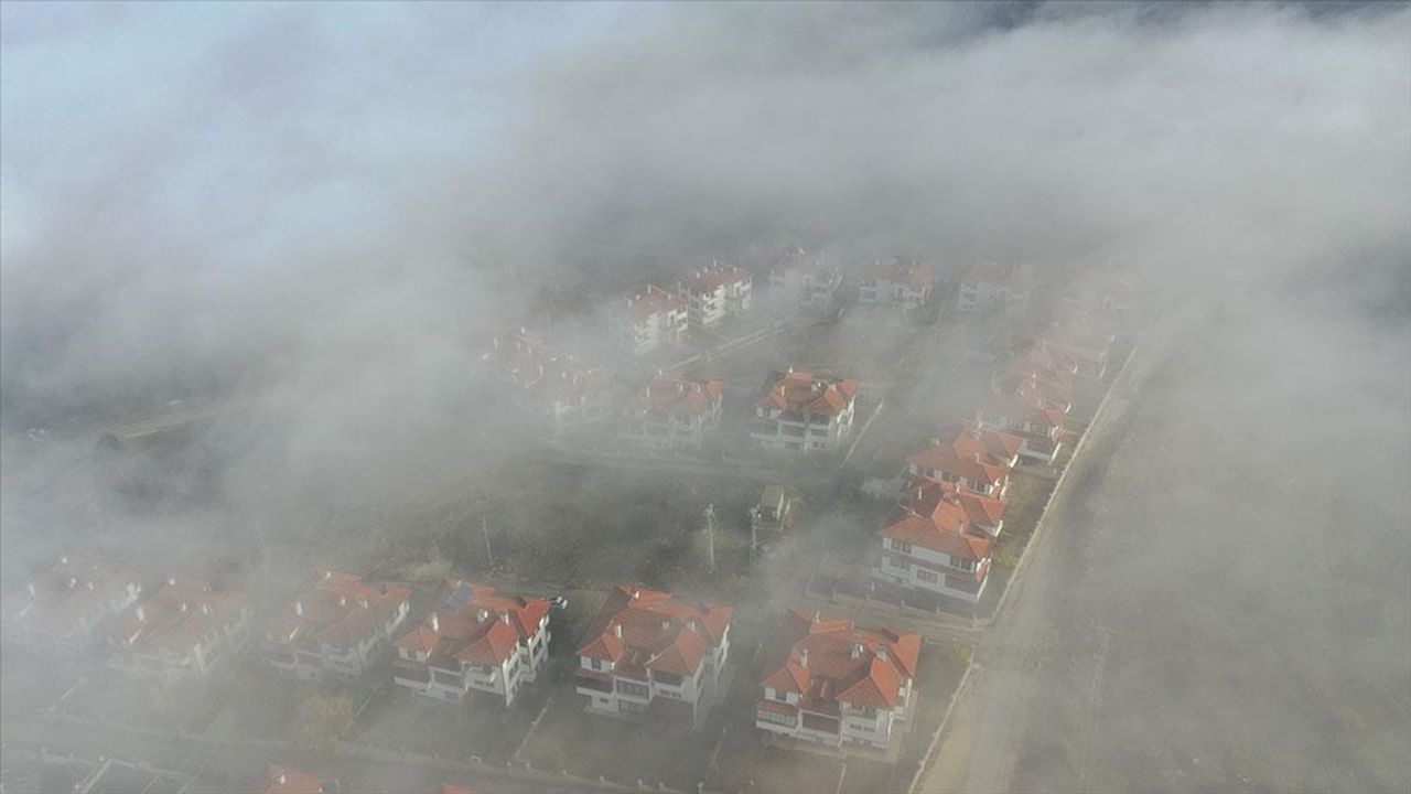 Gün boyu şehrin üzerine yayılan sis nedeniyle binalar sis altında kaldı.